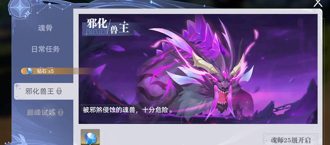 邪化兽王,建议每天免费3次,魂环魂骨主要来源,战力不达标可邀请大佬帮忙,可以购买次数存着
