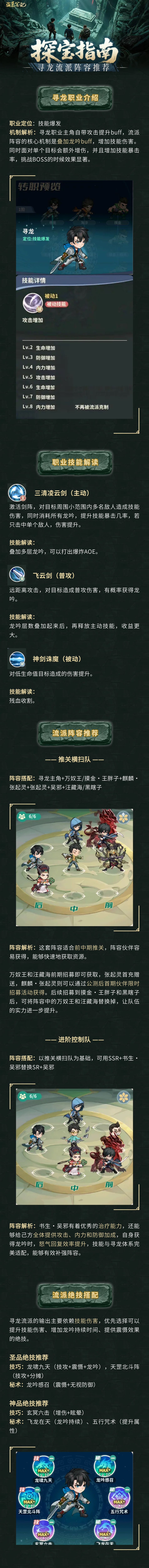 探宝指南丨寻龙职业主角阵容推荐及绝技搭配,强力AOE快速清屏!