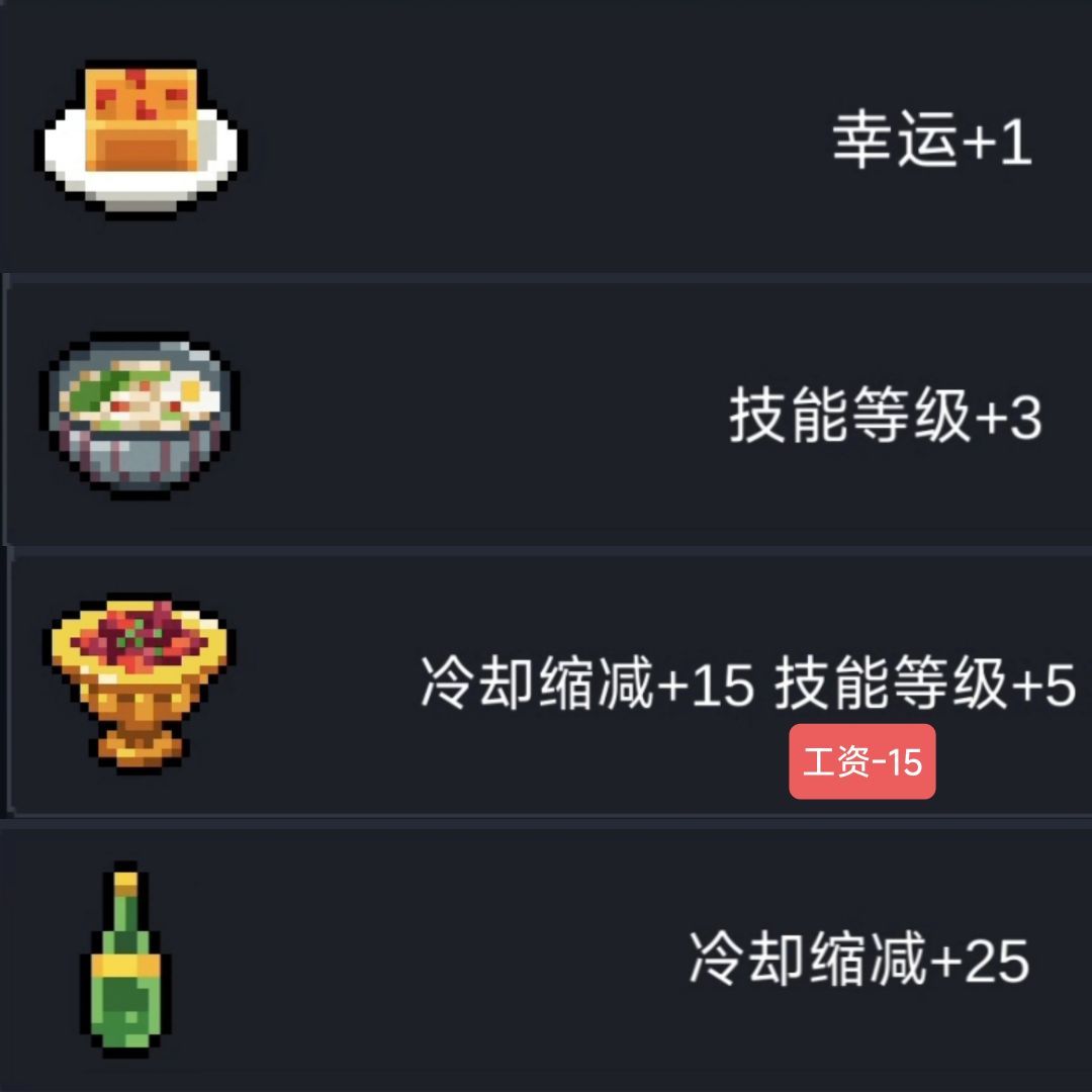 餐食推荐:【人物技能等级】【人物CD】【幸运】。