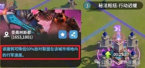 5.降低敌方在重要联盟领地得行军速度,在关键争夺,防守城市时的重要联盟建筑
