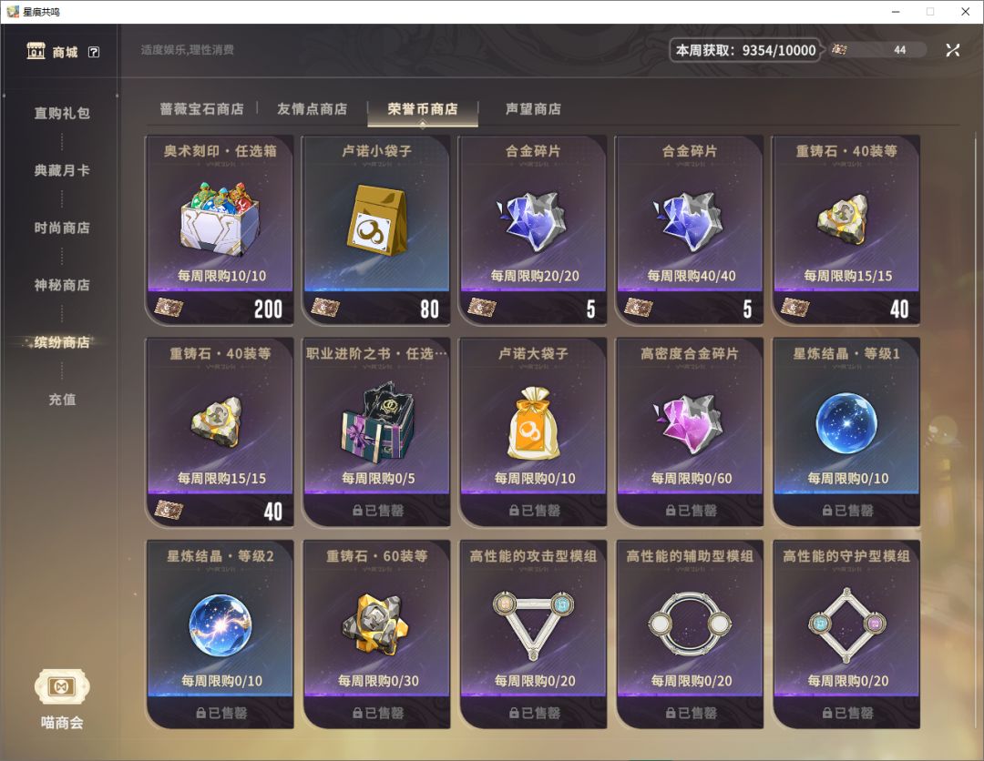 2、荣誉币商店货币每周请刷满,优先购买进阶书、精炼材料、卢诺袋等。白嫖的真香。