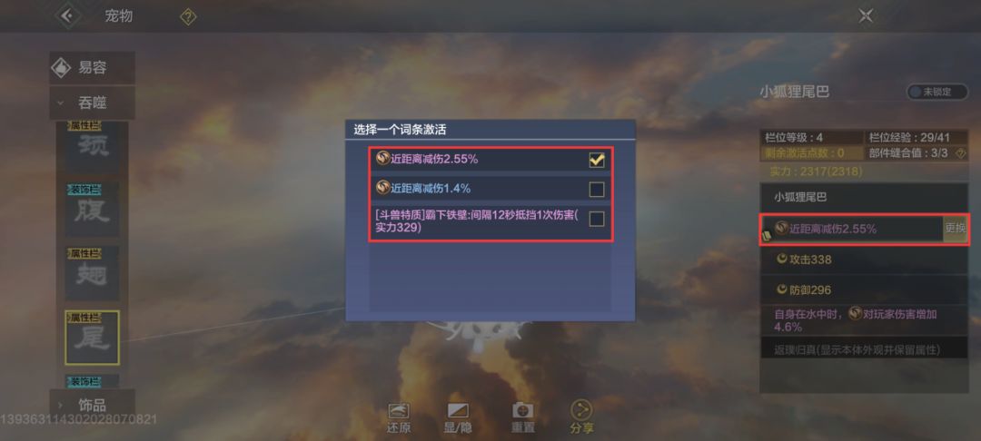 也就是说,新版本中宠物每个变异部位的词条通用组成结构变为“数个固定基础词条+1个特质词条+1个特性词条+1个属性词条”(后3类词条可随时切换)。