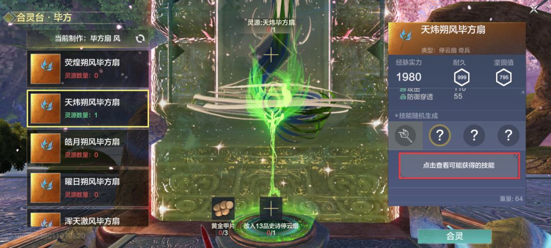 PS:当前品阶灵源的随机技能库,可在合灵界面右侧点击查看。