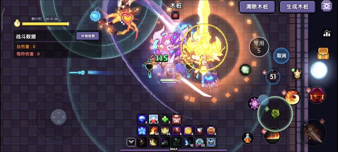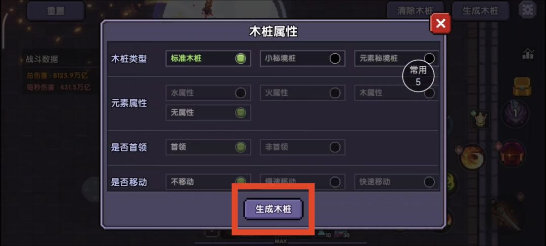 木桩出现瞬间,所有技能全交,打一套满buff伤害