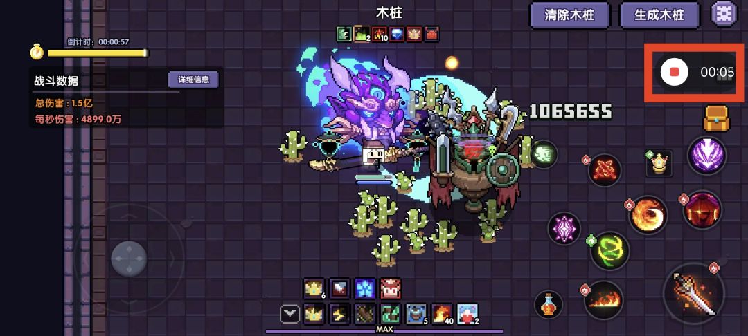 ②那么我们在叠完所有buff层数后,我们就可以在“计时器/录屏”的秒数个位数是3或者8时召唤木桩,这样即可在木桩生成时立马挂上“仙人掌之王”的buff