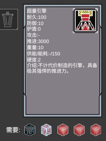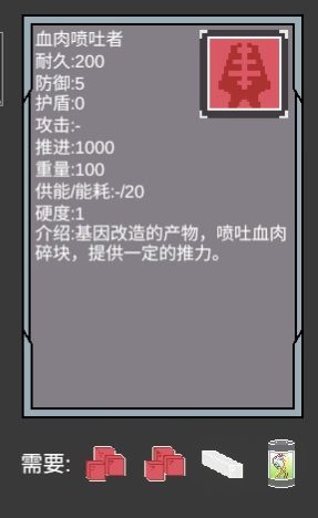 最后需要一个引擎来保持正面装甲对准敌人,能量足够就用超量引擎,不够就用血肉喷吐,血肉喷吐也用不起就别装引擎