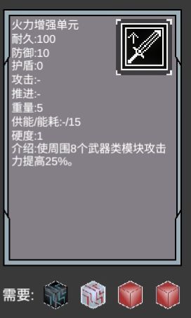 有些功能性武器不需要用火力增强单元,比如侵蚀炮2,它需要更多的数量来快速减防而不是提升那点微不足道的攻击力