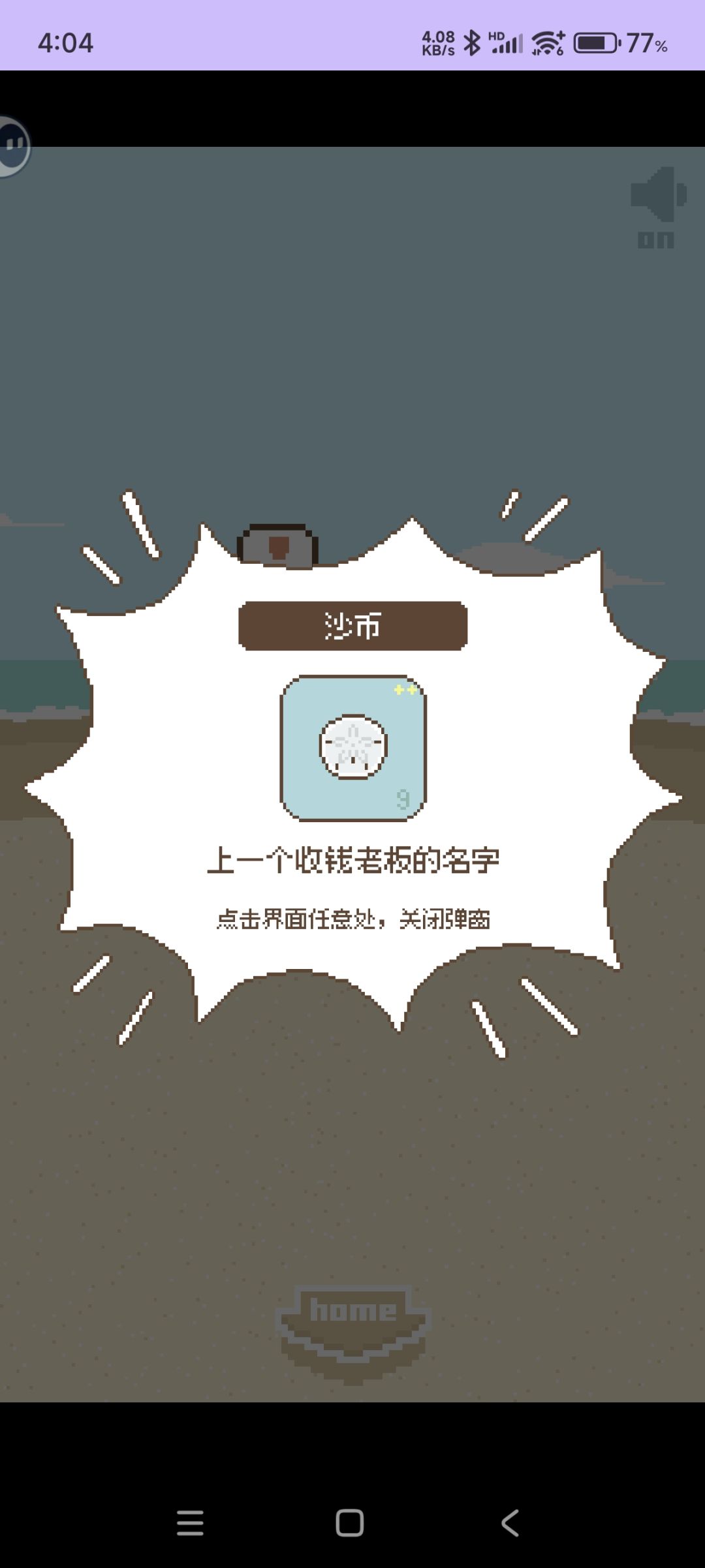 玩了85分钟,很放松的游戏,我们的时间P我特别喜欢,图鉴齐了其他没有,还在努力,希望留声机和海滩以及挖掘音效可以单独设置,想听音乐但是其他声音太大了,没挖出来的声音容易吓一跳,经常连挖十几个都是空的,靠近海洋的地方很多按不动,不过有时候又能按动一下,不挖就这么挂着听很放松,挺推荐的