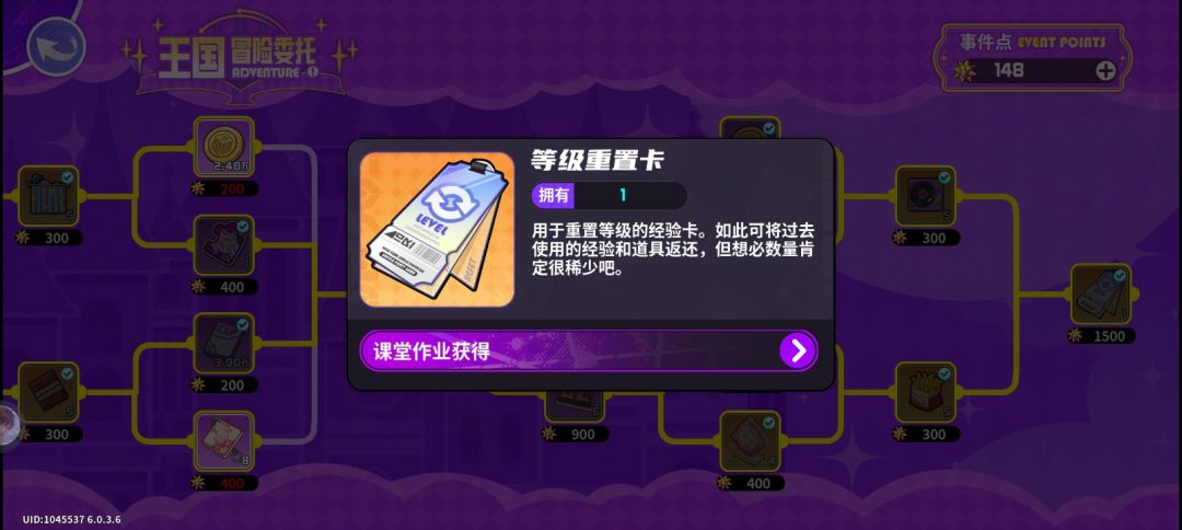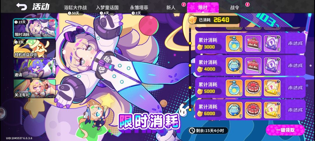 这是每个活动都有的领奖励的地方,领取优先领取抽卡道具和翻牌道具,然后就是万能碎片。之后有多的话可以考虑把经验拿下来。奖励最后面目前有两种可能一种是背景,另一种是等级重置卡,背景肯定要拿。等级重置卡没什么用可以不拿
