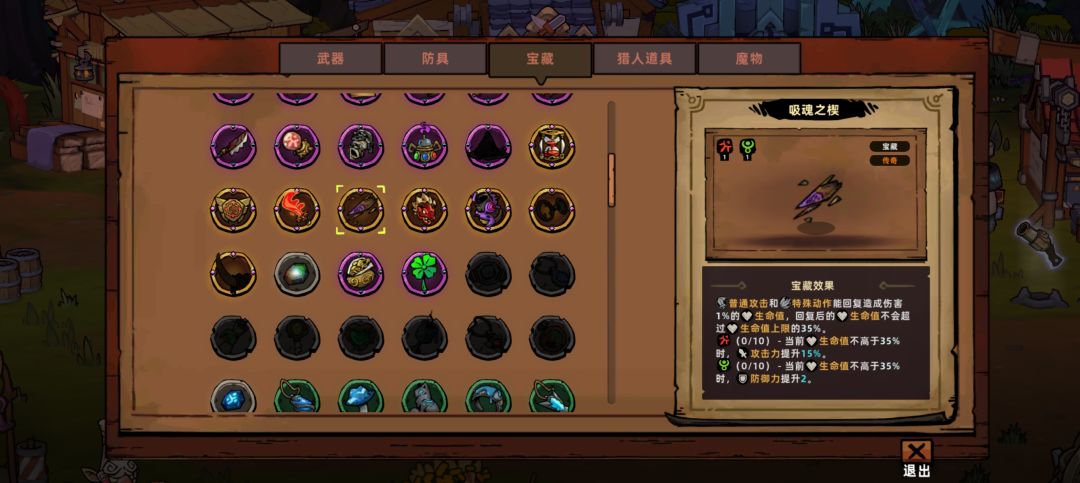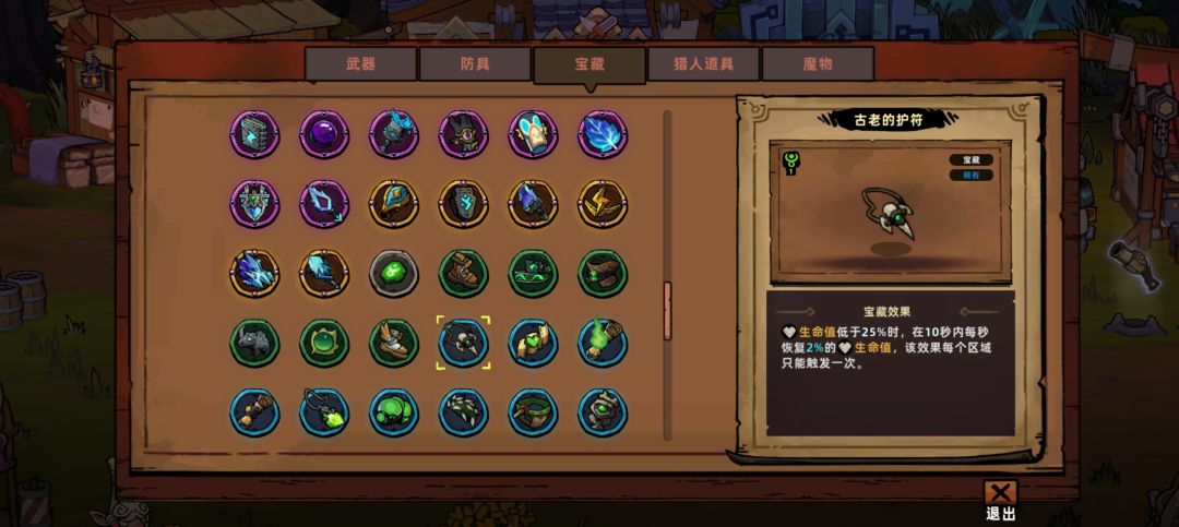 以上就是“站撸机枪派”最核心的俩出装,符文尽量点绿色和红色,毕竟站撸最大问题是生存,输出肯定是够的,其它的宝藏尽量围绕血量低于35的来,有很多,我简单发几张,能用哪个就看到时候碰见啥了吧,防具我是用的重装符文的,应该不是最合适的,至于哪个最合适也只能看场上出哪个吧,不过我还是建议用重装,因为防御属性和生命属性对站撸也很重要