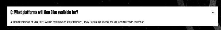 2K官网确认NS2版的「NBA 2K26」会是第九世代版本