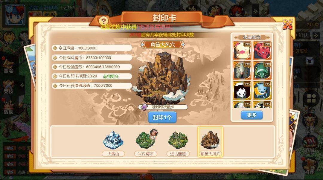 1、宠物获取方式新版本宠物可通过封印卡来召唤宠物,封印卡以此分为:大雪山、米内葛尔、远古遗迹、角笛大风穴。其中大雪山和米内葛尔最高可获得珍品宠物,远古遗迹最高可获得极品宠物,角笛大风穴最高可获得王品宠物!