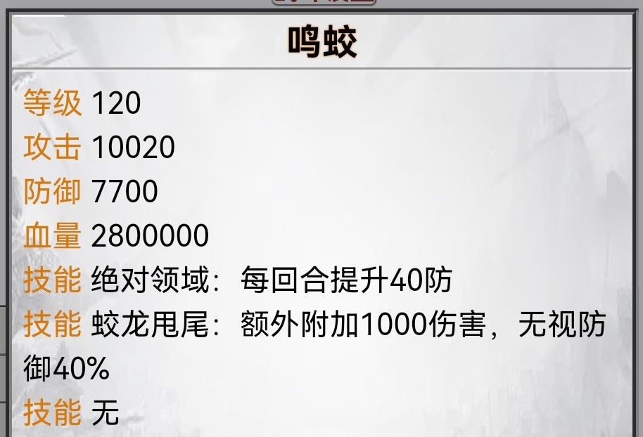 以九天神龙为例,以下为九天神龙1级的属性: