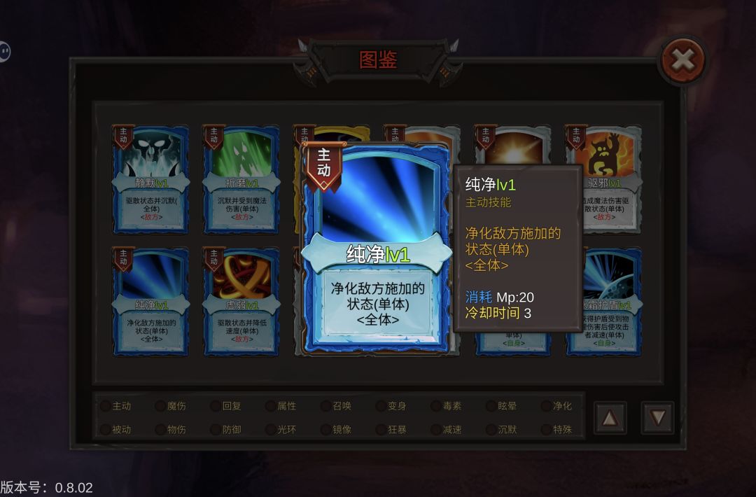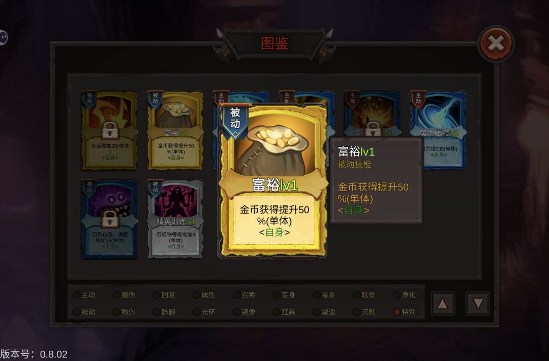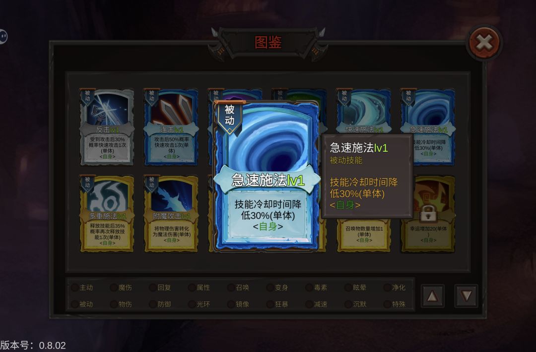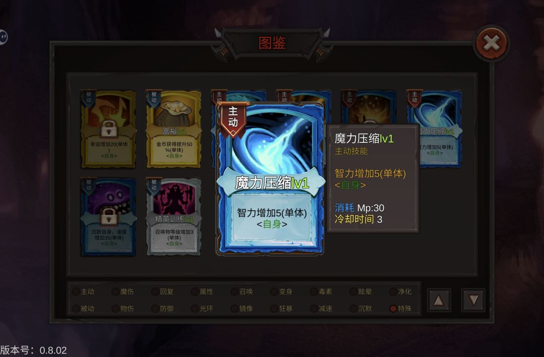 2. 生存卡:魔力护盾和群体庇护选一张,前期捡到的防御卡也可以留着,打不过boss就放进技能栏试试,群体净化留着对付毒boss。但这游戏好像和月圆之夜一样有诱导机制,我一般只拿需要的卡,别的卡不碰。