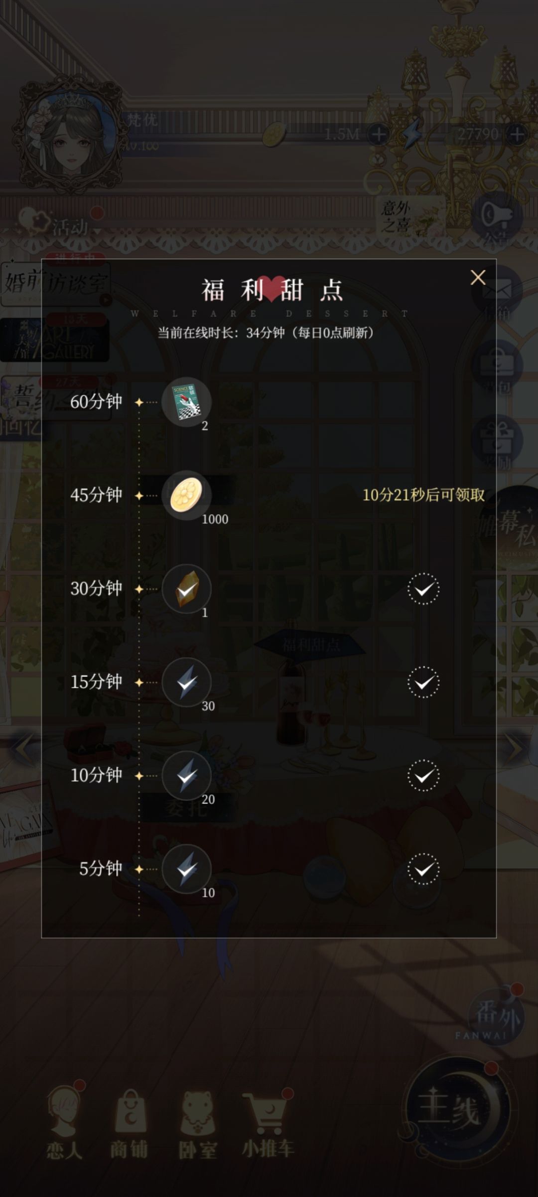 - 委托:150*3+750+750+250=2200(这部分每日要花费18*5=90体力来做)*7=15400