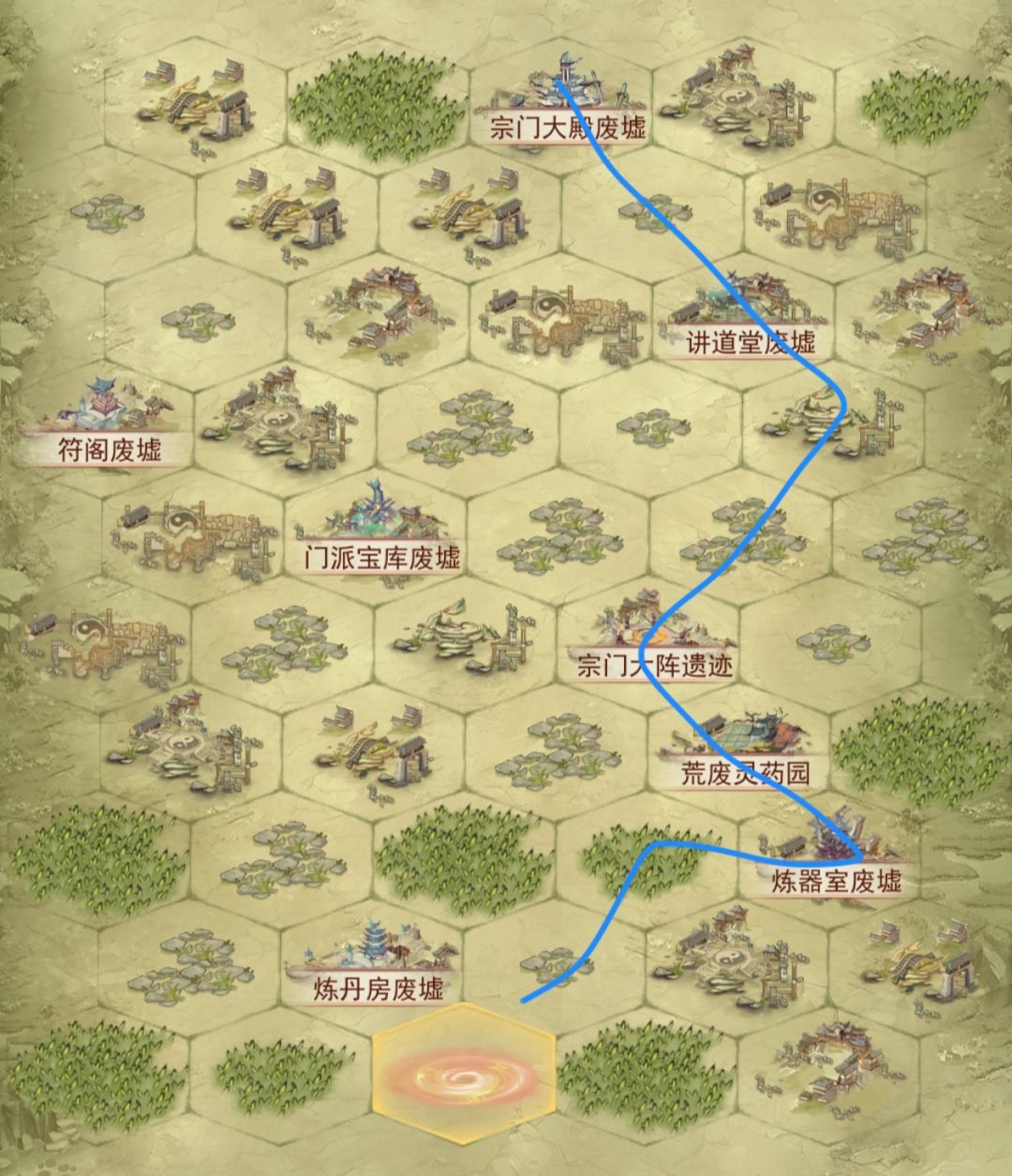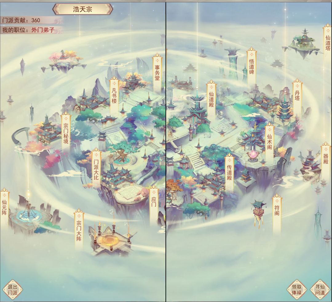 按上图顺序探索,探索完成后,不点其他地方,每天点炼器室,宗门大阵,讲道堂,宗门大殿