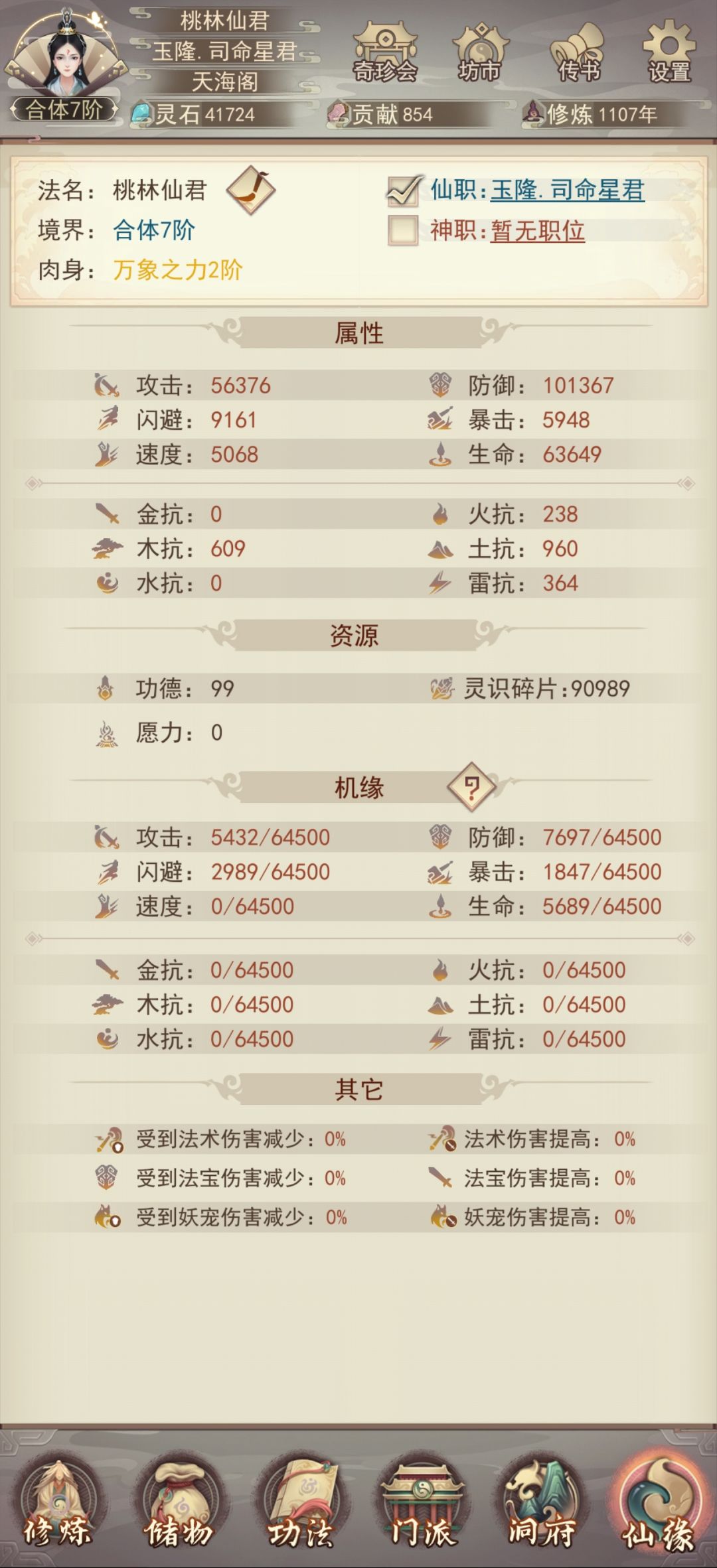 挂上外门十大,赐福送的仙术令抽掉,再打打仙道塔(打不过有抗性的正常),传道殿记得预约,真经是加抗性的,不推荐听取。