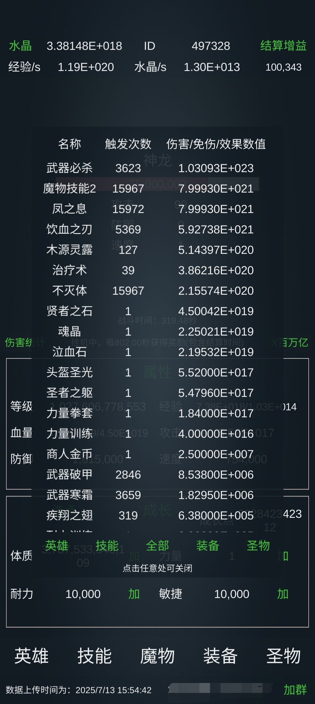 1万亿级过。开局属性:生命4.5E+19,攻击5.52E+17。