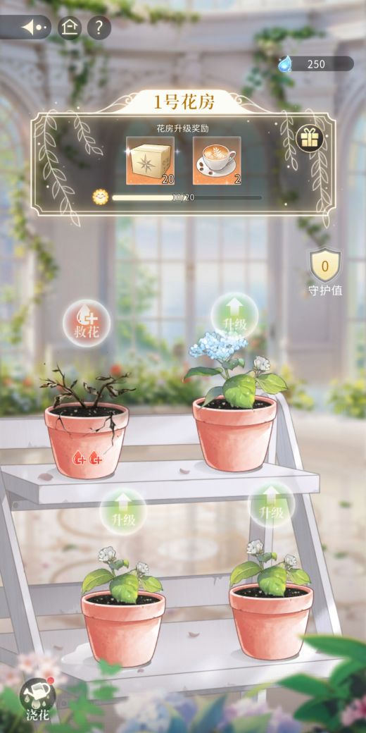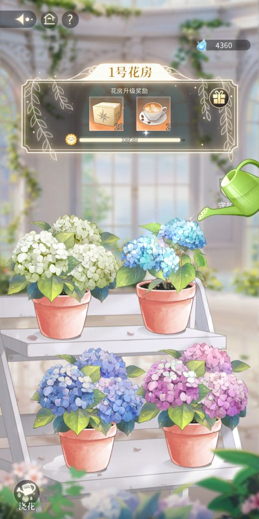 待到花房里每朵花都开满时,便会有惊喜奖励掉落,而花房也会升级解锁下一阶段的目标喵!