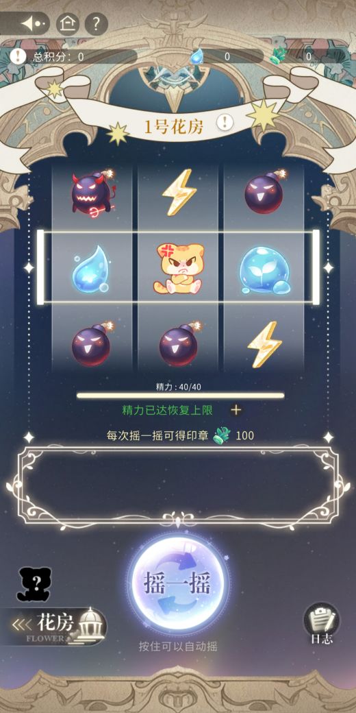 快启动面前的魔法摇摇机!只要摇到晨露图案,就可以根据数量获得晨露奖励,给花园浇花~