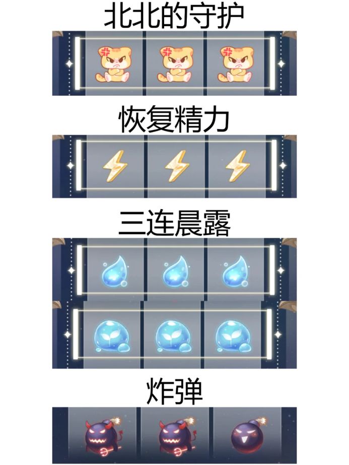 当入梦师摇出三个北北时,可获得1次北北的守护,能保护花房免受1次炸弹攻击。
