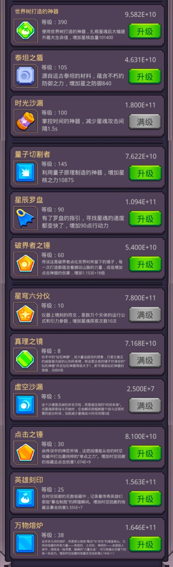 还剩下一些神器,分为几大类,可以按需求自由提升。
