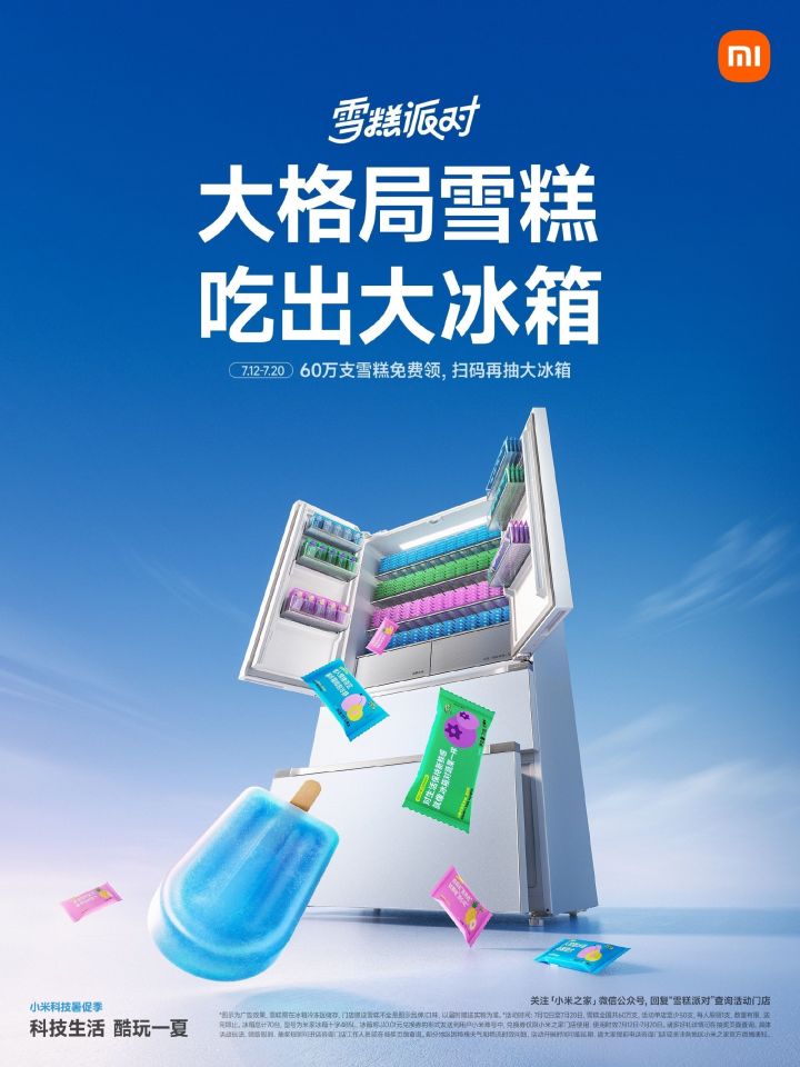 炎炎夏日,小米之家开启了一场大家最喜欢的环节!——送出60万支“大格局雪糕”,还有机会抽大冰箱。