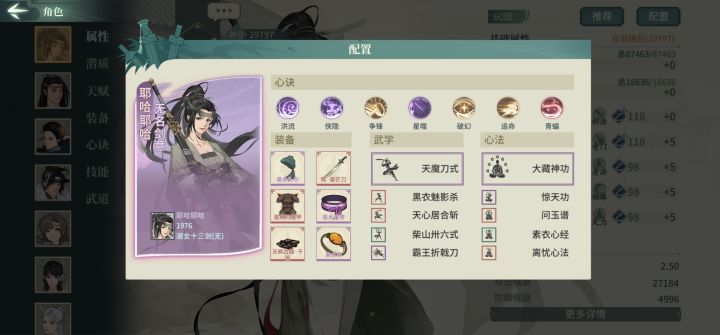 刀魔配置分享,至于其他门派,看养的输出侠客给不给力了。