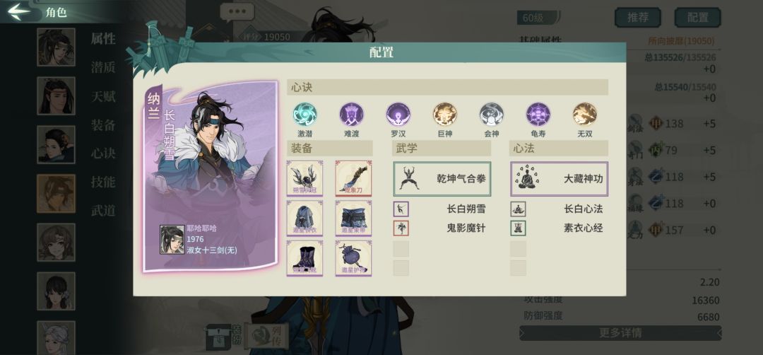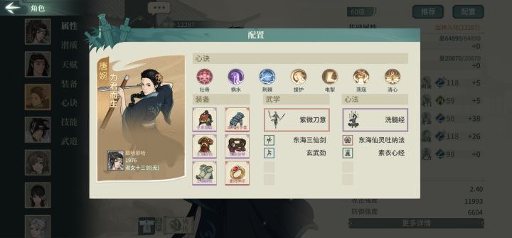 死磕5个小时,终于把配置试出来了,之前给主角炸盾发现因为没有资源配第二个c所以打不过赫连图,所以尝试把气合拳给了防御位很多的纳兰,但是出现了盾量不够炸死三阴的情况,于是换下了唐婉的少林拳,让她减少挡刀频率同时给紫薇刀打一定的控制和坦度,这样可以增加给每个人吃药的次数,从而均摊每回合受到的伤害,让纳兰叠更多的盾。
