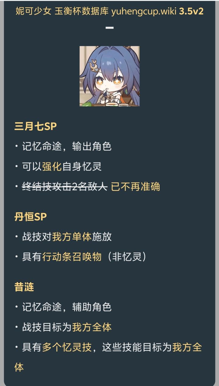 妮可少女玉衡杯,于昨日7月13日,更新了关于sp三月七,sp丹恒以及昔涟的定位。