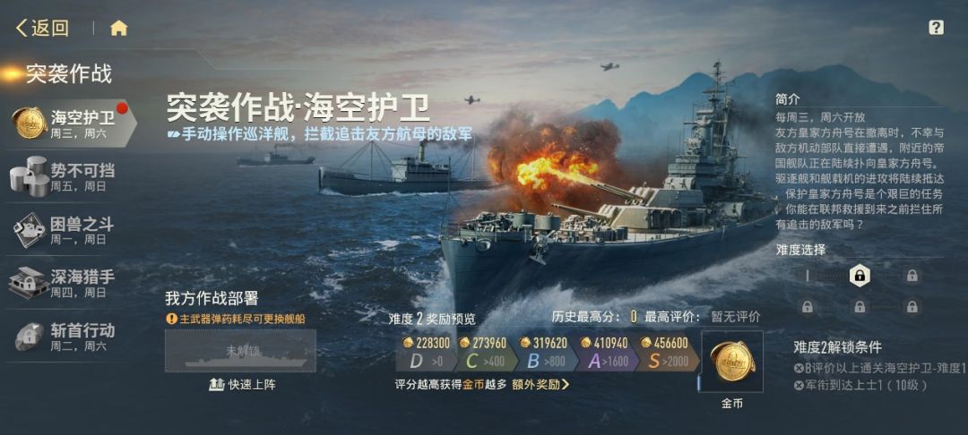 · 评分机制: 摧毁敌舰、击落敌机、护送友军、完成阶段任务等均可提升战斗评价分数。