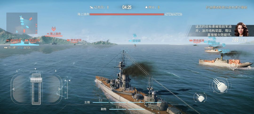 o 战列舰: 护送爆破船摧毁海上油井。