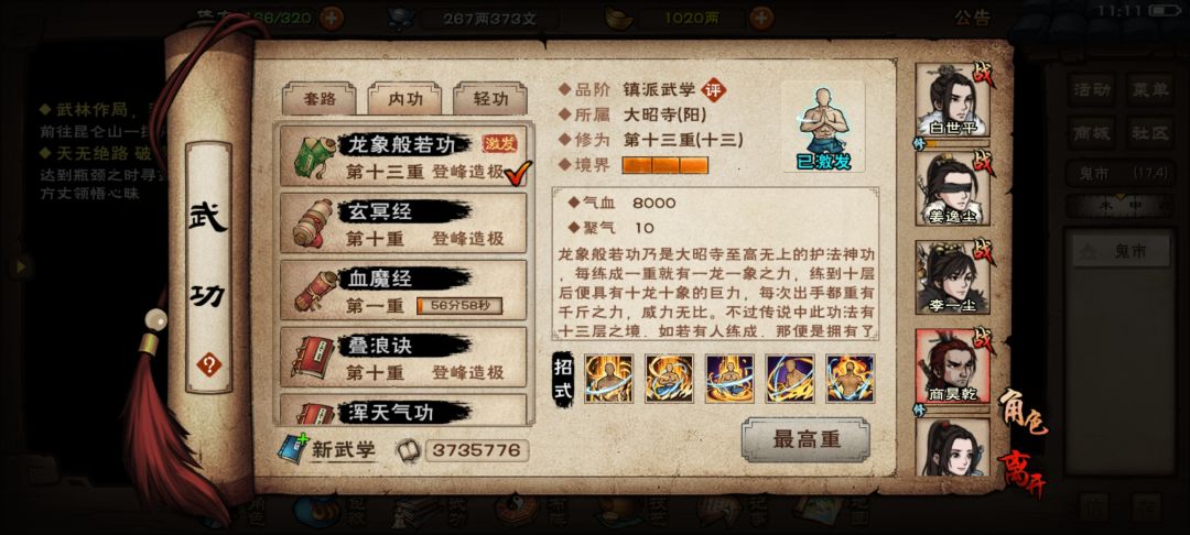 这几天看了些攻略发现百级版本和之前版本发生了很大变化,想请教一下百级之后随从使用那些功法,只知道步惊云应该是云十➕龙象,小李子做为主t要用什么套路和内功,老商玩刀的话要用什么套路和内功,只考虑pve