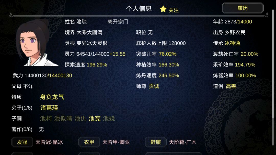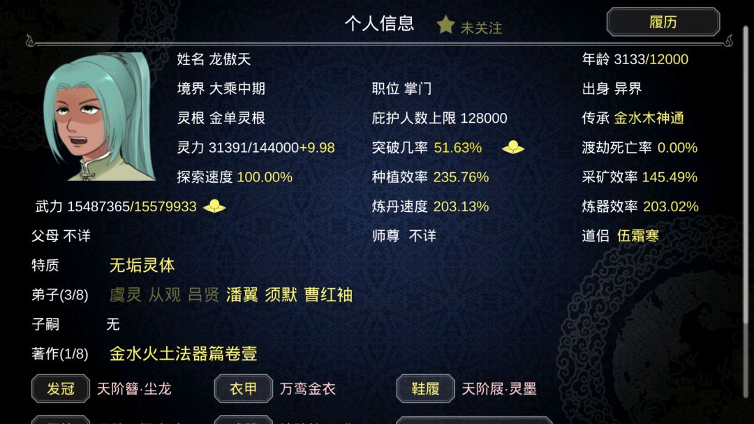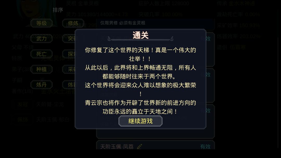 结尾惯例,附上通关图以及,杂灵根无特质,一周目,蜕变后的掌门