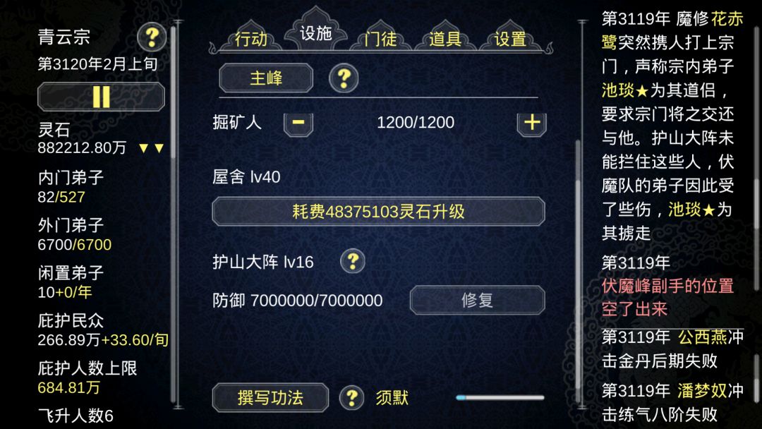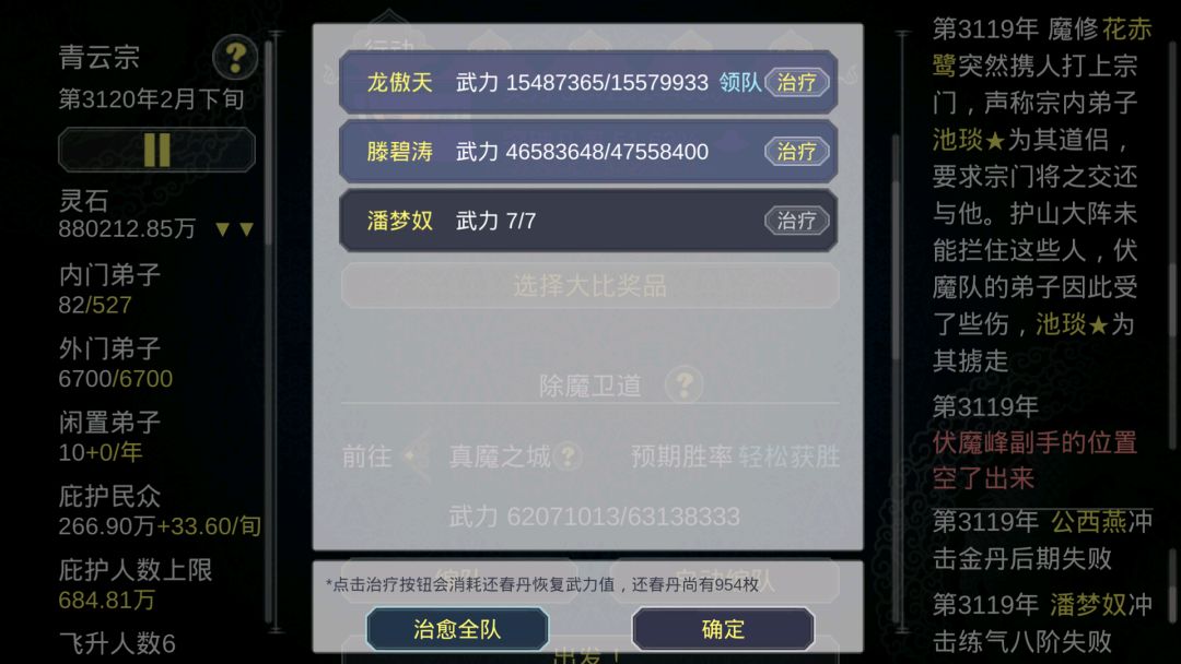 魔修武力910万 VS 防御700万、掌门武力1550万+4700万队员