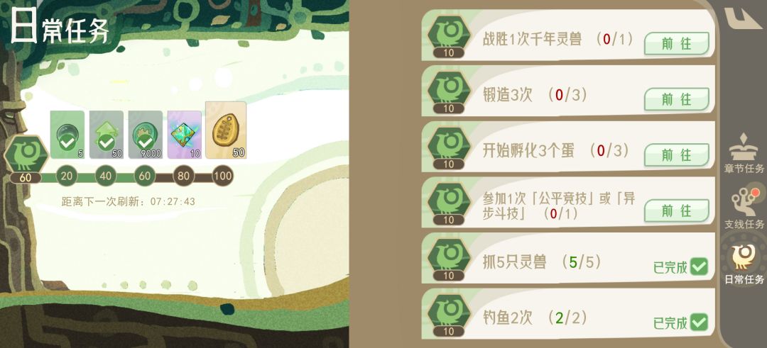 零氪党一定要做日常任务拿灵气升级,主角等级升了灵兽才能接着升级