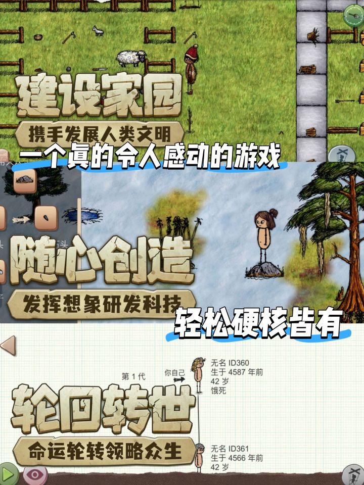 进入游戏,你将置身于远古时代,一切都要从零开始。每一局游戏都是人类文明发展的一个缩影,你可能出生在繁华都市,也可能降临于荒郊野外 。作为原始部落的一员,你要在短暂的“一生”里,努力采集资源、制造工具、建造家园,为家族和部落的发展贡献力量 。当这一局结束,你还能查看家谱,看看后代在你的基础上取得了怎样的成就 。