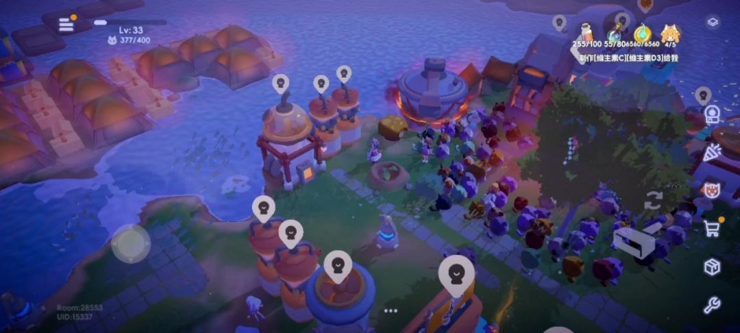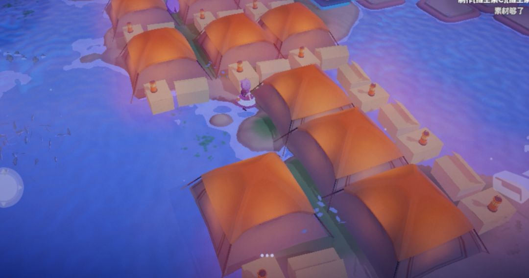 也就是说我们不需要看奇蛋怎么往帐篷走,因为他已经在酒店预定入住了,所以说我们不需要看帐篷的布局,可以找到一个空地然后无脑放置在一起方便我们每天对于梦币的收集,如图: