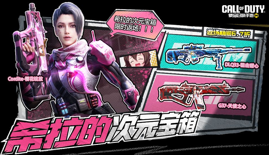 希拉-粉色小樱身着粉色护甲,将少女感和机甲的科技融为一体。当被敌人轻视的时候,她会用手中的Cordite-樱花绽放、G37-天使之心和DLQ33-狙击甜心给出回应!