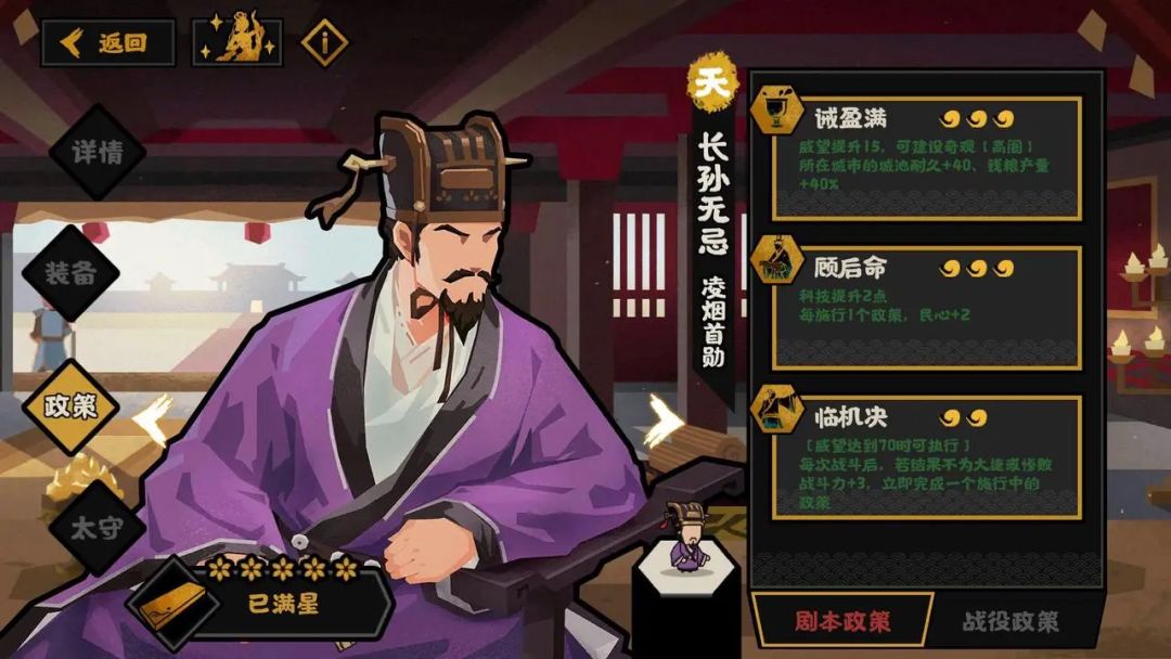 由于目前看不出魏征对于【政略】有什么需求,只能推测是作为房玄龄杜如晦的搭配名臣,或者在快速剧本中适当补充政略