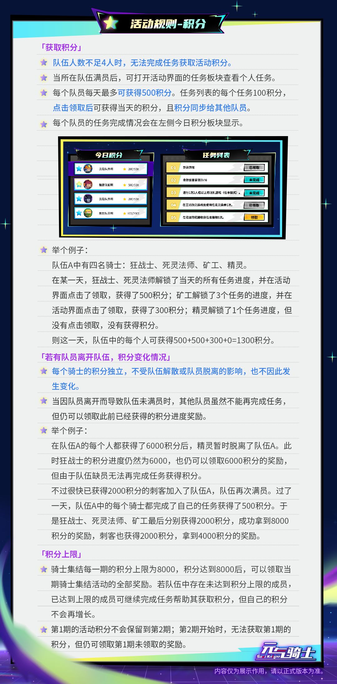 简单地说,就是和其他骑士伙伴组成小队,完成集结任务获取积分,领对应积分奖励~