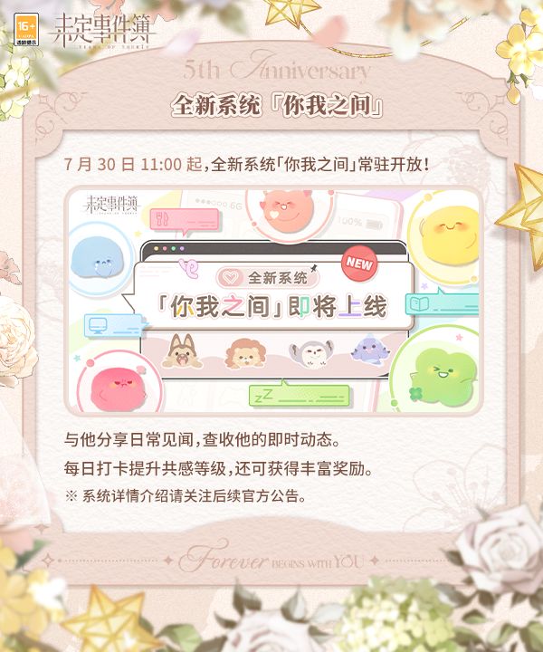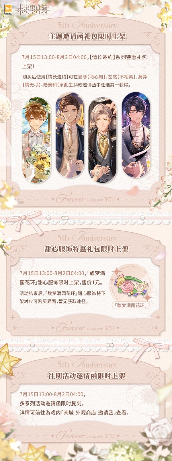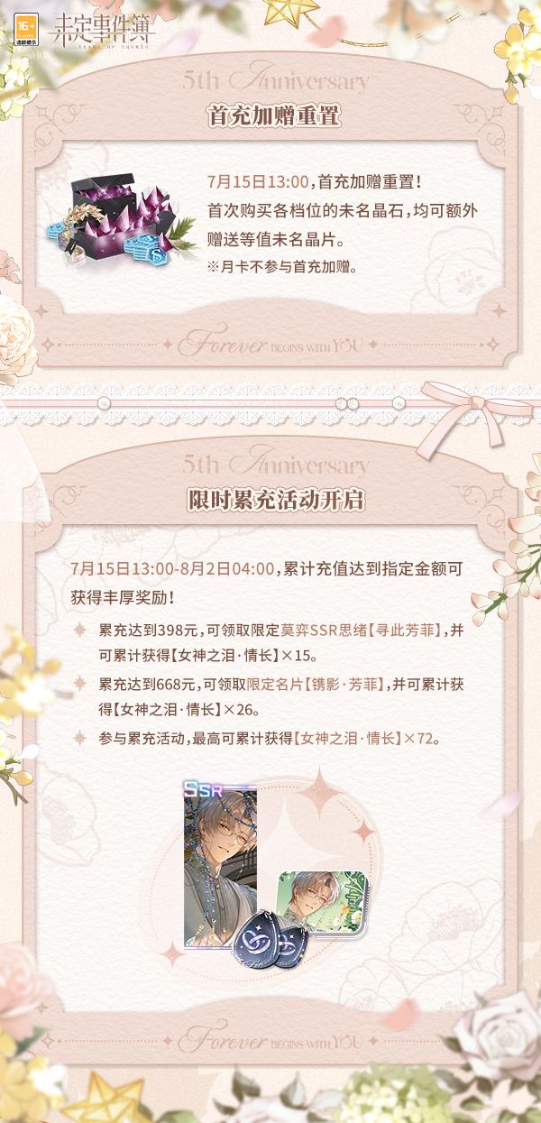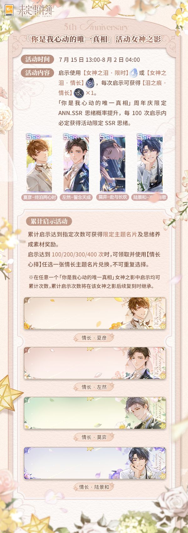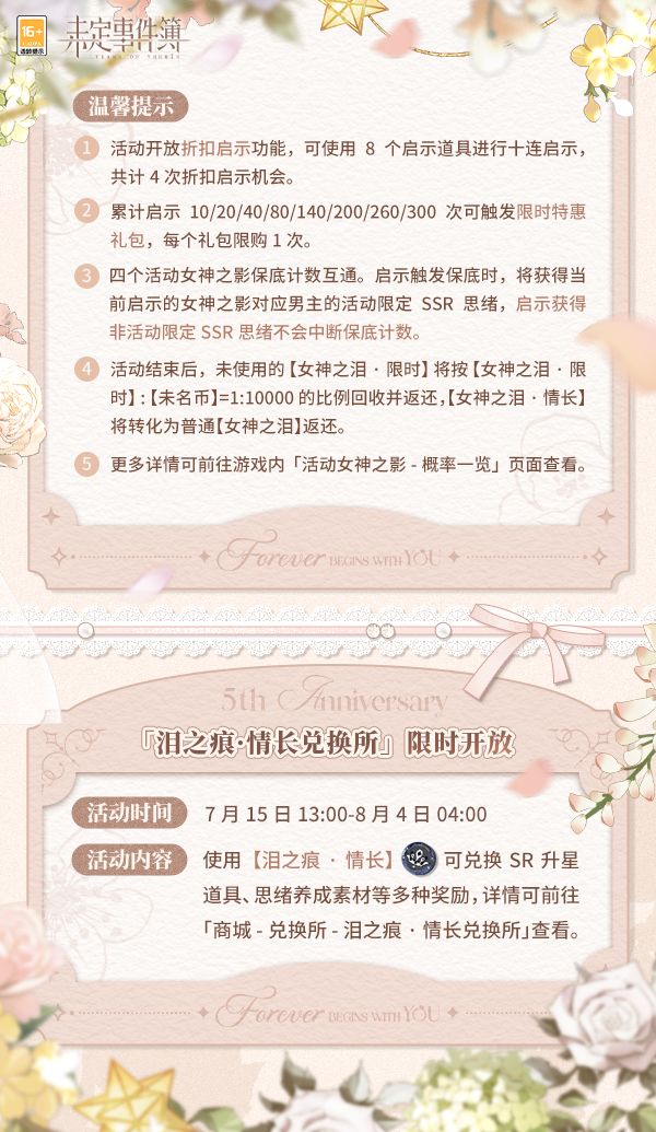 《未定事件簿》「你是我心动的唯一真相」五周年特别庆典现已结束,女神之影将于今日13:00开启!