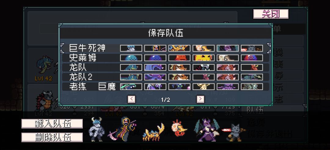 然后我还喜欢玩全史莱姆整活,或者全龙队➕爬行动物,不多说,龙帅嘛,自然爱玩,上图就是最近一次龙队打的无尽,打到上百级龙队的数值就跟不上了,龙队就偏柔和能上buff,但是缺少上debuff和去debuff。