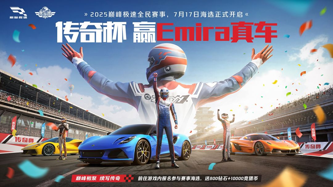 《巅峰极速》携手世界三大跑车品牌之一的莲花跑车,联手为玩家备下超百万重磅大奖!最终夺冠的车手将直接开走莲花 Emira真车——它和游戏里的【运动组】传奇车型是不同版本的“亲兄弟”;而且本次冠军大奖还贴心的覆盖价值车价25%的偶然所得税,让你轻松提车无压力~