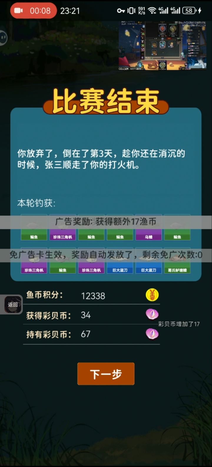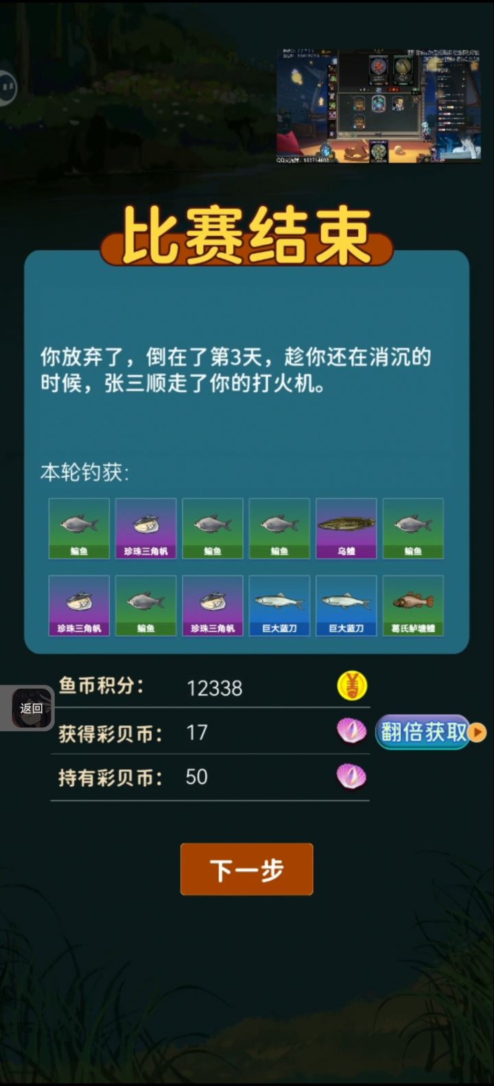 在晋级赛前一天把鱼饵用完后 直接选择彻底躺平
