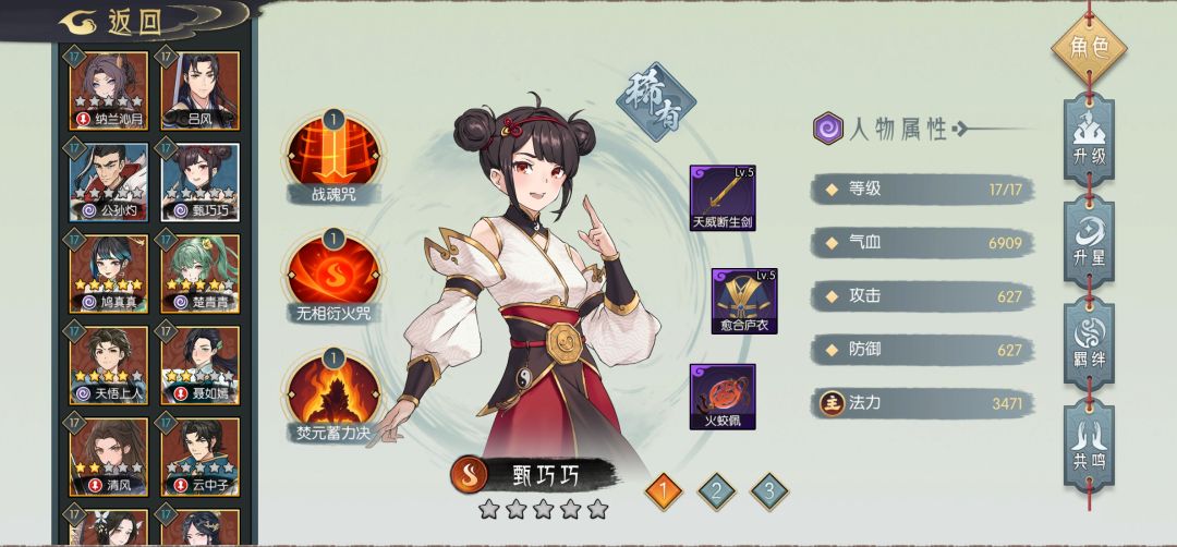 主要是要血量,血量越高越好,没二次测试,但是我的感觉是其他角色攻击法力装备差些也无所谓。首饰的话这个阵容最关键主角带加血量的活动玉佩(直接影响回元丹数值),其他可以随意带。其他装备可以穿加护盾的鞋子和回血的衣服。