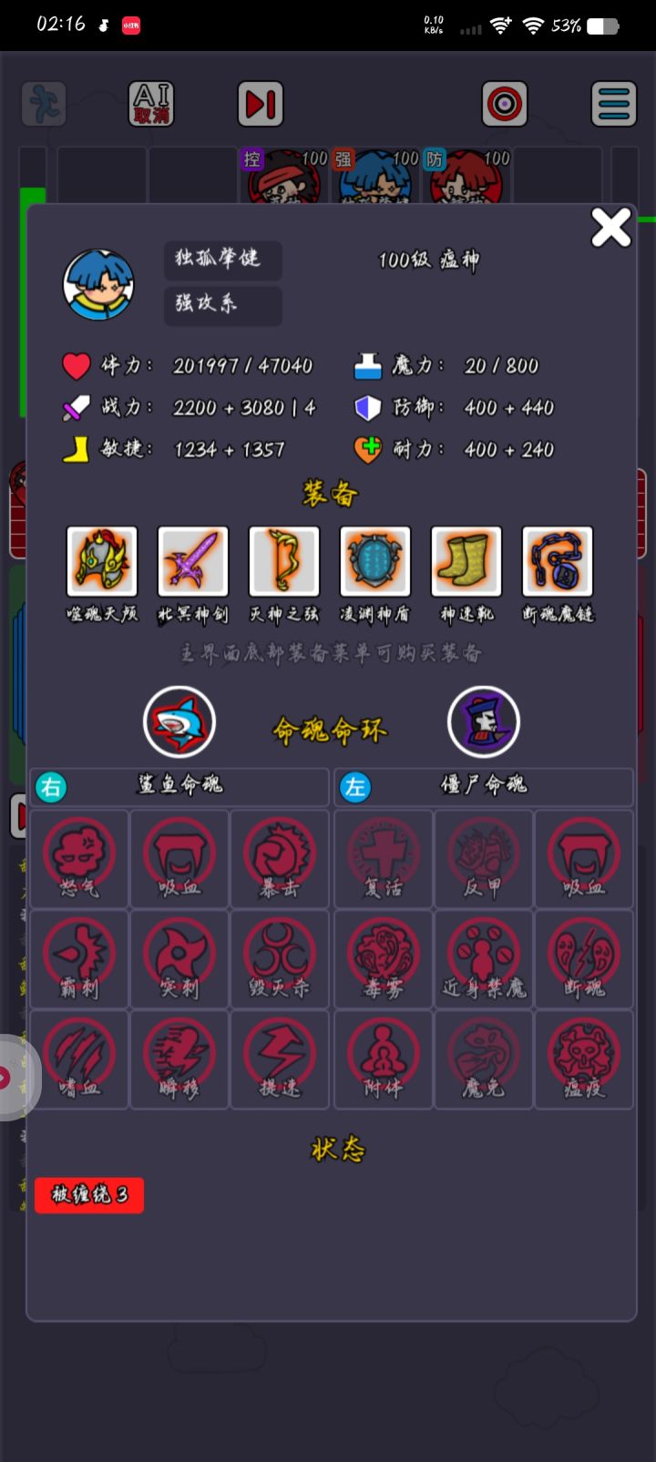 1、独孤肇健 100级 强攻系 鲨鱼、僵尸双命魂