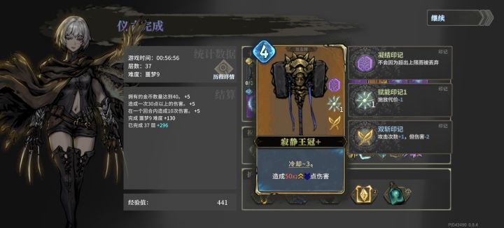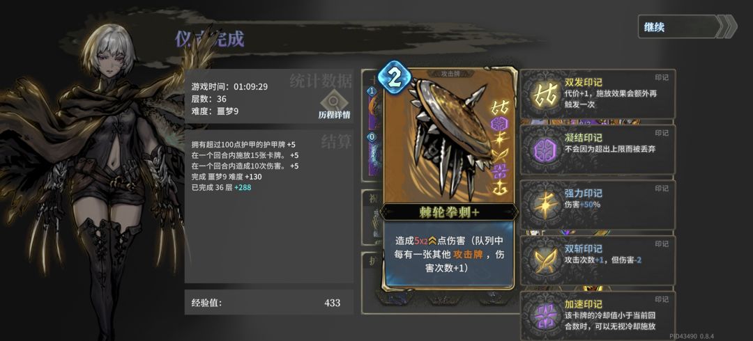 思路解析:临时生命有两个逆天机制,一是名刀效果,即不管承受多高伤害都能剩一些血;二是每次最多只会扣除相当于你当前血量的临时生命,所以你的血越低,反而越肉。每回合先上临时生命,就能磨死所有boss。印记要求低,成型难度低。