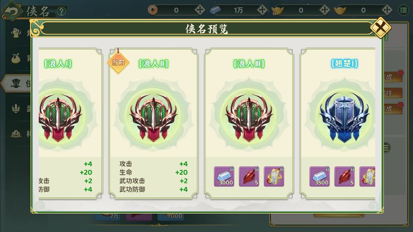 如果少侠你十分好奇下一阶段会有什么专属奖励,只需点击侠名图标,就能清晰预览后续所有阶段的奖励,以及你已经获得的所有属性加成!