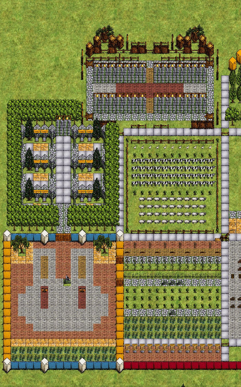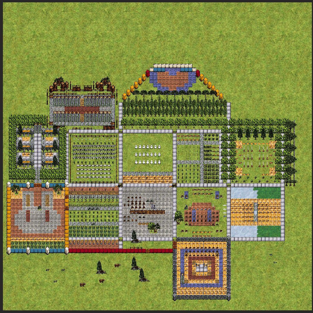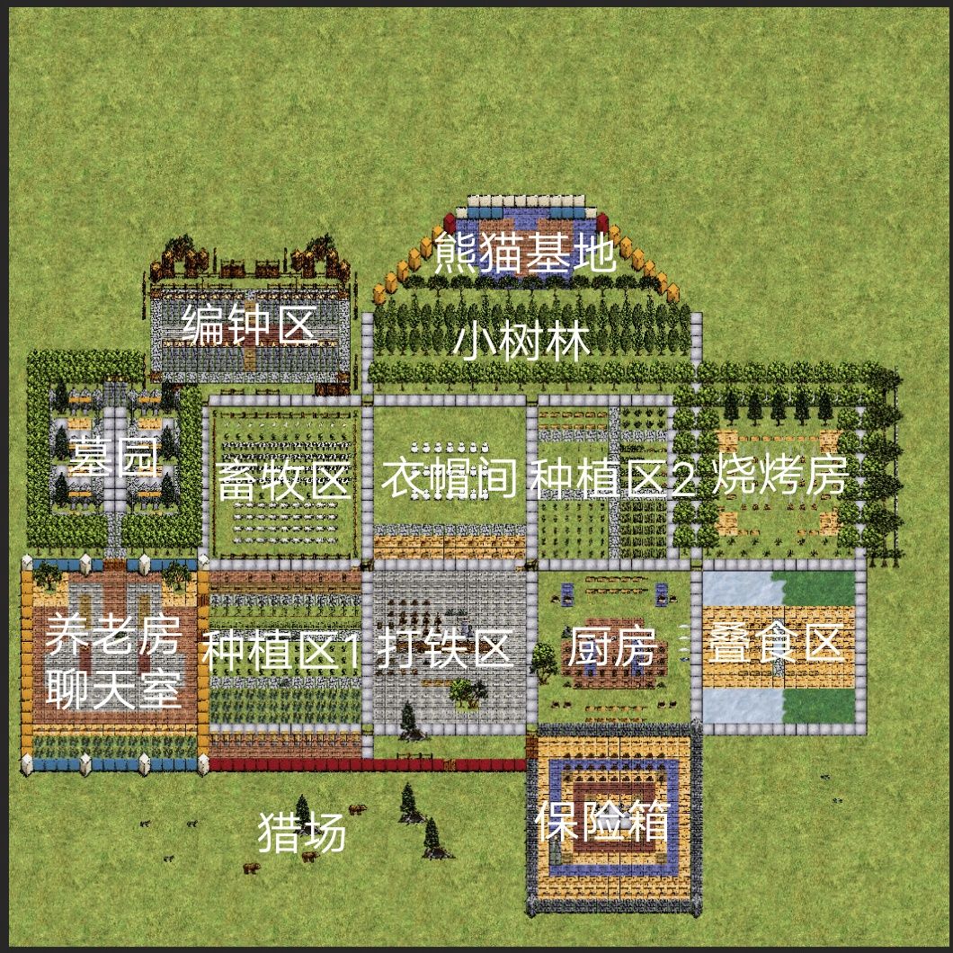 种植区2主要种苎麻小麦和一些用的相对较少的用作烹饪的作物,所以靠近衣帽间和猪猪厨房。旁边的小树林是为了方便堆柴。唯一不太方便的是小麦离畜牧区稍微有些远,然后忘了画上蓄水池了